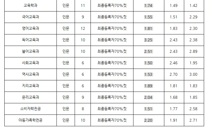 적용하는 것이 좋겠습니다. 아래 자료는 현행 9등급제 기준 입결입니다.